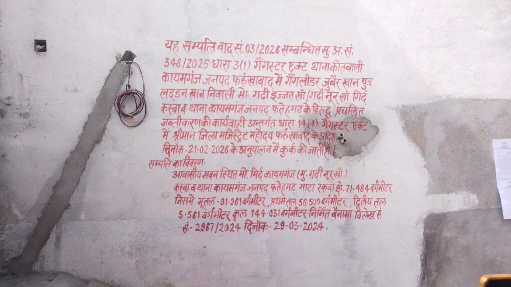 कायमगंज / फर्रूखाबाद :- पुलिस और तहसील प्रशासन ने एक बड़ी कार्रवाई की है। जिलाधिकारी के आदेश पर कुख्यात गैंगस्टर जुबैर खान की लगभग 22.35 करोड़ रुपये की अवैध चल-अचल संपत्ति कुर्क की गई है। यह कार्रवाई अपराधियों और माफियाओं के विरुद्ध ‘जीरो टॉलरेंस’ नीति के तहत की गई।