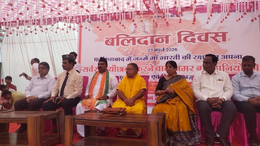 फर्रुखाबाद :- फतेहगढ़ स्थित डीएन डिग्री कॉलेज के मैदान में सोमवार दोपहर बाद बलिदान दिवस कार्यक्रम का आयोजन किया गया। इस अवसर पर गौ सेवा आयोग के राष्ट्रीय अध्यक्ष श्याम बिहारी गुप्ता ने कहा कि हमें नए भारत के निर्माण की प्रेरणा लेनी चाहिए।