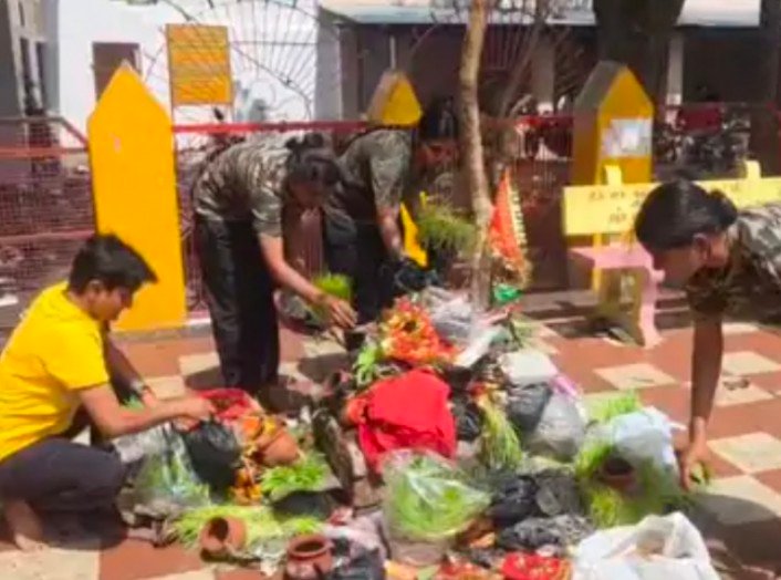 नवरात्रि के दौरान श्रद्धालुओं की भारी भीड़ के कारण मंदिर परिसर में जगह-जगह पॉलिथीन, फूल-पत्ती, पूड़ी, हलवा और अन्य पूजन सामग्री बिखर गई थी। इससे परिसर में गंदगी फैल गई थी, जिसे साफ करना आवश्यक था।