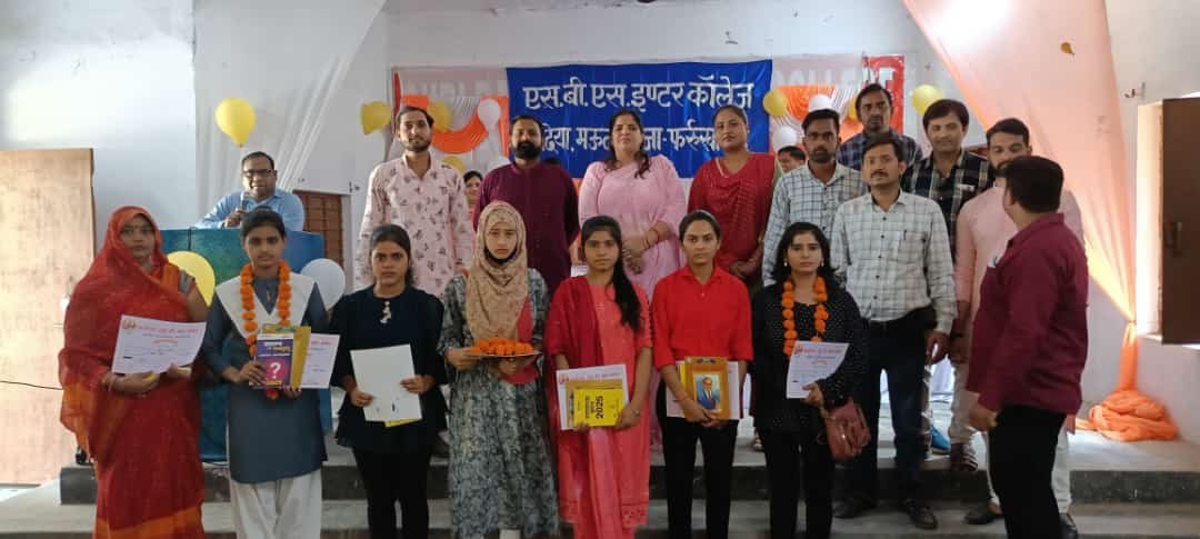 फर्रुखाबाद :- एस.बी.एस दददु जी इंटर कॉलेज खंदीया में यूपीबोर्ड से उत्तीर्ण हुए हाई स्कूल व इंटर मीडिएट के छात्र छात्राओं को सम्मानित कर प्रमाण पत्र वितरित किए गए। हाई स्कूल में 106 बच्चो ने इंटर मीडिएट के 146 छात्र छात्राएं उत्तीर्ण हुए। इस अवसर पर डायरेक्टर डॉ प्रीती यादव ने बच्चो को समानित किया। इस मौके पर प्रधानाचार्य जी.एस. शर्मा अध्यापक संजीव यादव, शोभित सिंह, सौरभ शाक्य, अनुज पाठक, कुशाग्र सक्सेना, दीपा, रशमी यादव, दिलीप कुमार आदि। ने छात्र छात्राओं को बधाई दी वा व्यवस्था देखी।
