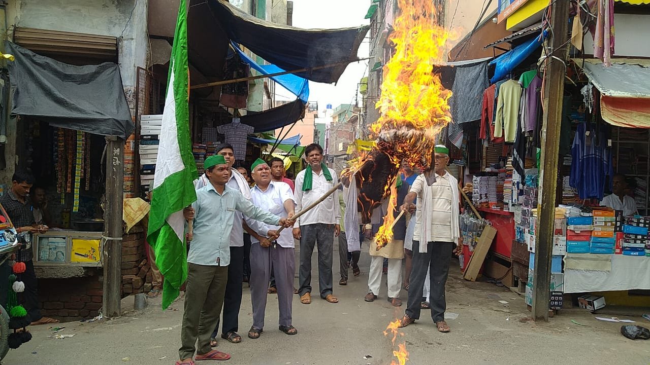 कायमगंज / फर्रूखाबाद :- भारतीय किसान यूनियन भानू ने नगरपालिका परिषद में व्याप्त भ्रष्टाचार और आम जनमानस के काम न होने पर कस्बा के मैन चौराहे पर अधिशाषी अधिकारी का पुतला फूंककर विरोध किया।