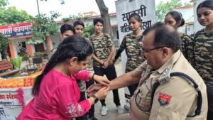 अपराध शाखा प्रभारी राजेश ,उप निरीक्षक नितिन कुमार, कृष्णपाल कश्यप,कांस्टेबल सिंधु सिंह,मनोज कुमार, रोहित, अशोक सहित सभी पुलिसकर्मियों को राखी बांधकर रक्षाबंधन का पर्व मनाया। इस अवसर पर शिल्की मिश्रा, अंजू , निकेता,संजना,गरिमा ,कशिश, चांदनी ने सभी को राखी बाधी।