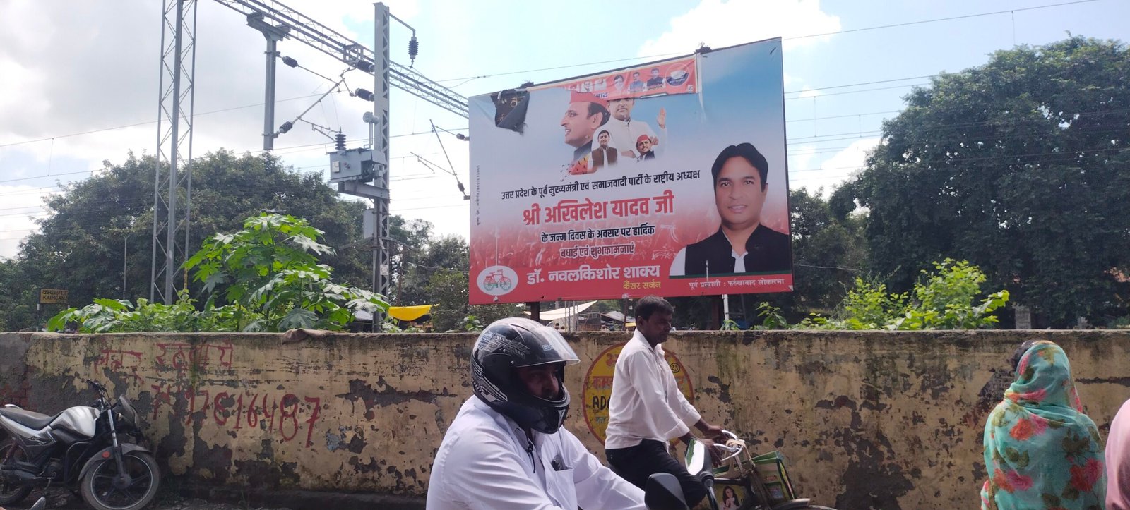 बिना परमिशन लगी रेलवे सीमा में प्रत्याशी की होर्डिंग अधिकारी बेखबर