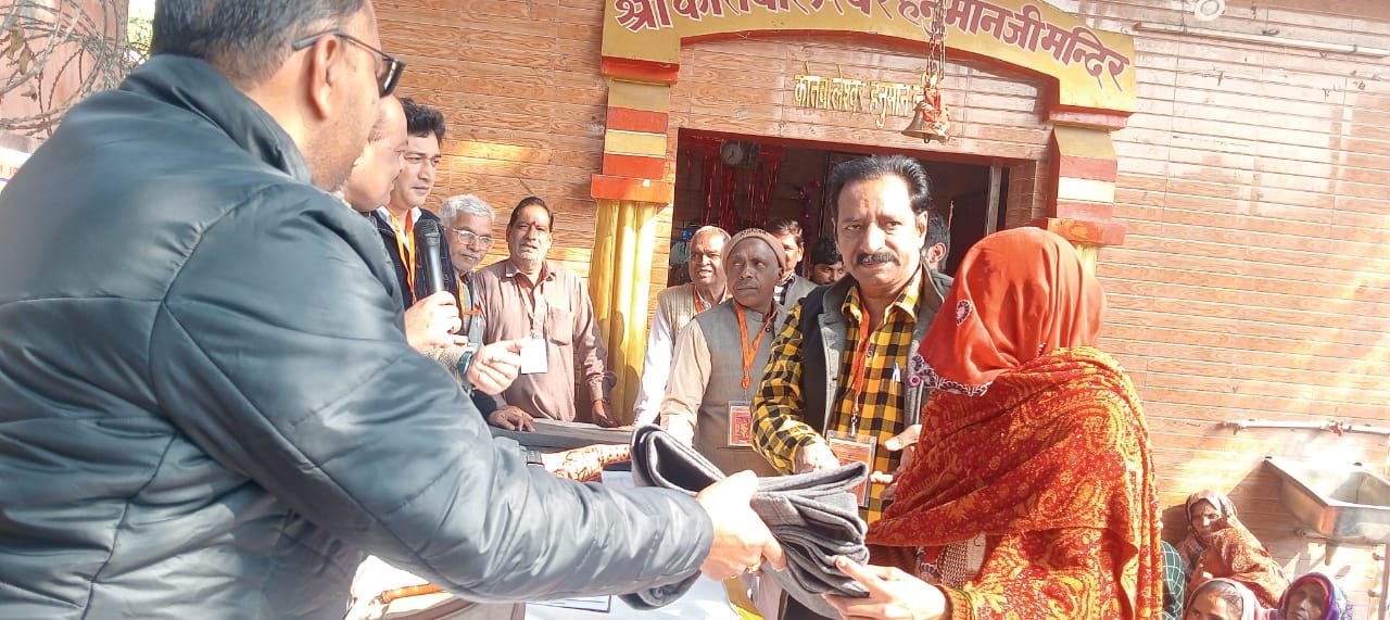 कायमगंज / फर्रूखाबाद :- रविवार को सर्दी के मौसम में श्री कोतवालेश्वर हनुमान जी सेवा ट्रस्ट के तत्वाधान में एक सौ एक गरीब बुजुर्ग महिलाओं पुरुषों तथा दिव्यांगों को कंबल वितरण कार्यक्रम में वितरित किए गए। मुख्य अतिथि चैयरमेन डा.शरद गंगवार , नीरज अग्रवाल, रश्मि दुबे , आसिफ मंसूरी,राम प्रकाश, कमेटी के उपाध्यक्ष जितेंद्र रस्तोगी, कोषाध्यक्ष अशोक गंगवार, वरिष्ठ उपाध्यक्ष कन्हैया लाल, महंत संगम शाक्य,राजू वैद्य विपिन कुमार कोहली, गुरुदेव, बबलू राठौर, विकास श्रीवास्तव, पंकज मिश्रा, दीपक शाक्य,प्रियंका पाल , कमलेश भारद्वाज आदि कमेटी के सदस्य उपस्थित रहे। कंबल पाकर सभी के चेहरे खुशी से खिल उठे ट्रस्ट के उपाध्यक्ष जितेंद्र रस्तोगी व मंदिर महंत संगम शाक्य ने बताया कि इस तरह के कार्यक्रम आगे भी चलते रहेंगे गरीबों व असहाय लोगों की सेवा होती रहेगी। कार्यक्रम का संचालन आसिफ मंसूरी ने किया तथा सभी ने इस कार्यक्रम की बहुत ही भूरि भूरि प्रशन्शा की।