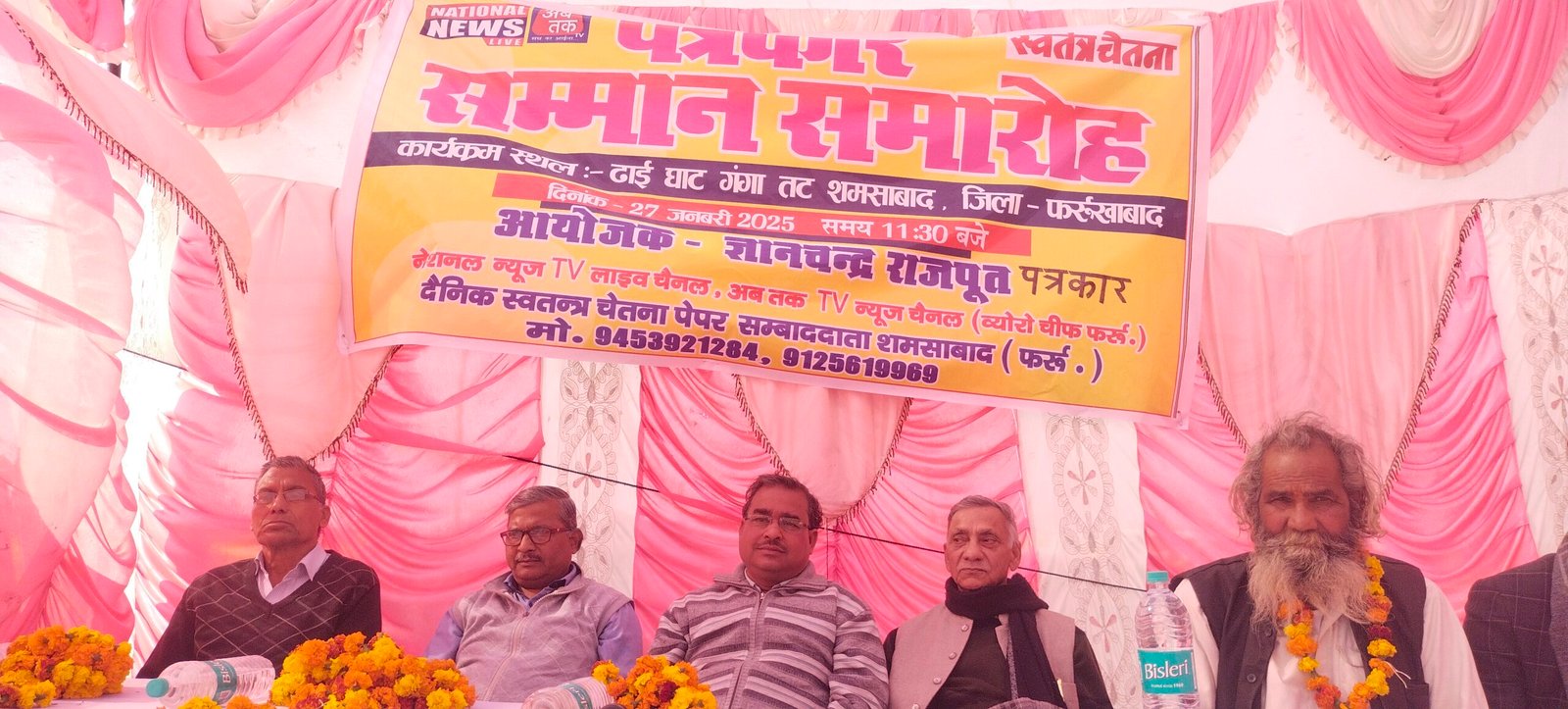 पतित पावनी मां गंगा तट पर लगे मेला श्री रामनगरिया में पत्रकार ज्ञान चंद्र राजपूत के द्वारा पत्रकार सम्मेलन का आयोजन किया गया जिस पर मंच को संबोधित कर रहे मुख्य अतिथि सर्वेंद्र अवस्थी इंदु, वरिष्ठ पत्रकार संजय शर्मा द्वारा पत्रकार साथियों का उत्साहवर्धन करते हुए कहा की वर्तमान में पत्रकारिता करने का कार्य सहज नहीं है यह काटो भरा ताज है। वर्तमान में पत्रकारिता के क्षेत्र में कई ऐसे लोग आ गए हैं जो सिर्फ वह वही चाहते हैं हमें लंबी पत्रकारिता के लिए ज्ञान को अर्जित करना चाहिए। इस अवसर पर आए हुए पत्रकारों को स्मृति चिन्ह व शाल उड़ाकर सम्मानित किया गया। ज्ञान चंद्र राजपूत ने कहा की ढाई घाट मेला घाट पर यह तृतीय पत्रकार सम्मेलन है इसके लिए उनकी पत्नी कांति देवी ने उन्हें उत्साहित किया था की क्यों ना ढाई घाटों पर भी पत्रकार सम्मानित किए जाएं और तब से वह प्रत्येक वर्ष यह कार्यक्रम कर रहे हैं पत्रकारों के एकजुट के लिए वह सदैव प्रयास रत रहेंगे। इस अवसर पर वरिष्ठ छाया का रविंद्र भदौरिया ताहिर खान उर्फ बज्जू दीपक तिवारी विनय सक्सेना गौरव शर्मा महेश वर्मा आलोक गंगवार सूचित वर्मा जन्मेजा दुबे सहित भारी संख्या में पत्रकार मौजूद रहे। कार्यक्रम के दौरान साधु संत भी सभा में मौजूद रहे और उन्होंने आए हुए पत्रकारों को अपना आशीर्वाद दिया।