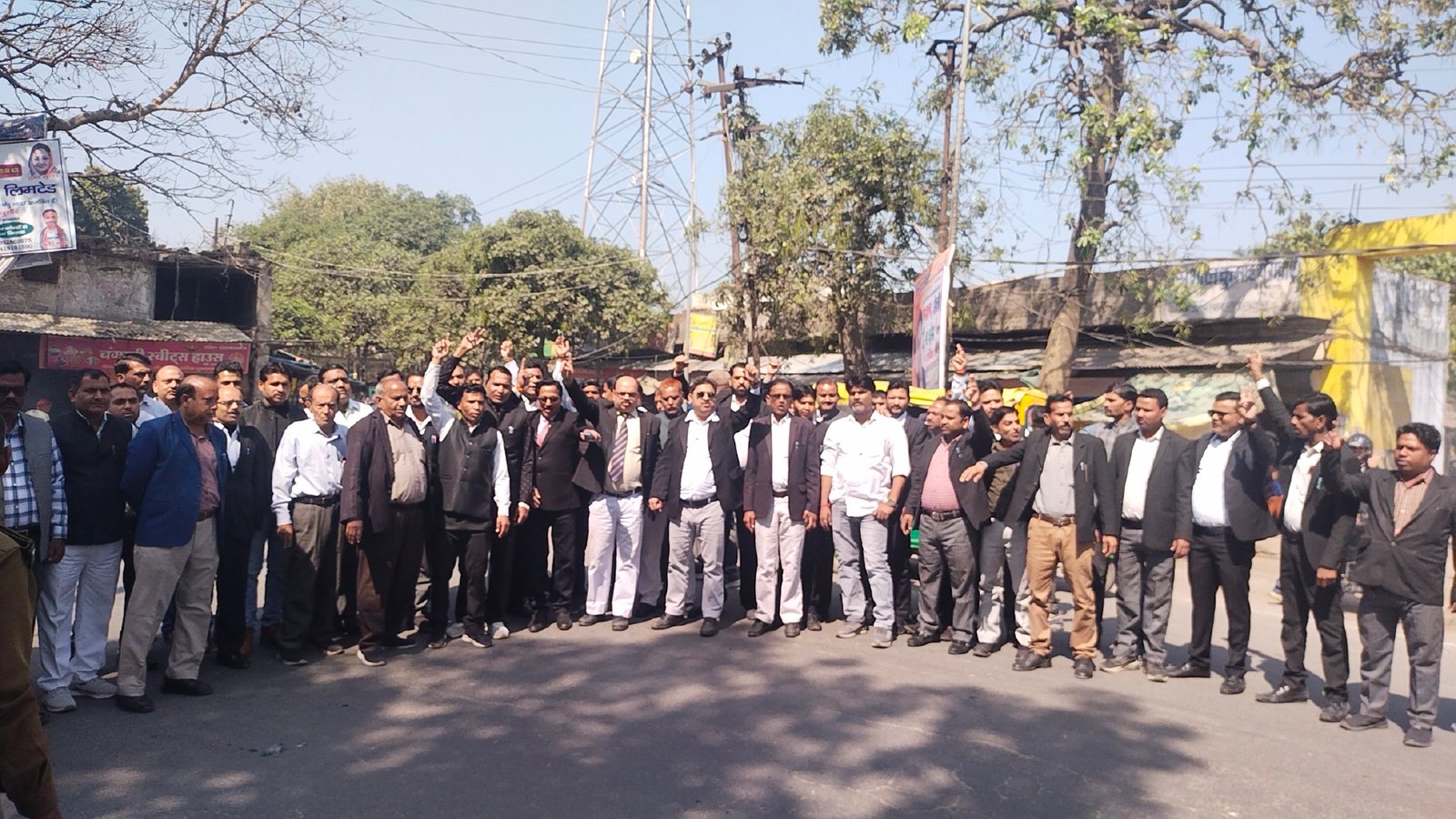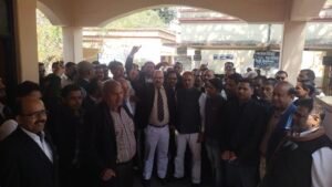 अधिवक्ताओं ने विरोध प्रदर्शन कर ‘जोर जुल्म की टक्कर में संघर्ष हमारा नारा है,काला कानून वापस लो, तानाशाही नहीं चलेगी,अधिवक्ता एकता जिंदाबाद आदि नारे लगाए ।