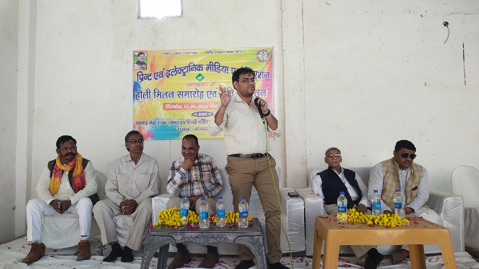 जिसमें जनपद की सभी तहसीलों के ब्लॉक स्तर के पत्रकारों ने सहभागिता की। पत्रकारों ने एक- दूसरे को अबीर – गुलाल का तिलक लगाकर पुष्पों की होली खेली। मुख्य अतिथि के रूप में उपजिला अधिकारी रविंद्र कुमार ने कहा की होली मिलन में पत्रकारों का समागम मैंने पहली बार देखा है हालांकि सभी अलग-अलग बैनर में काम करते हैं लेकिन इस तरह से एक मंच पर होना बहुत ही गर्व की बात है। मुझे बहुत ही खुशी मिली है और यहां के पत्रकारों का स्नेह मिला है जो उन्होंने मुझे इस मंच पर आने का अवसर दिया।