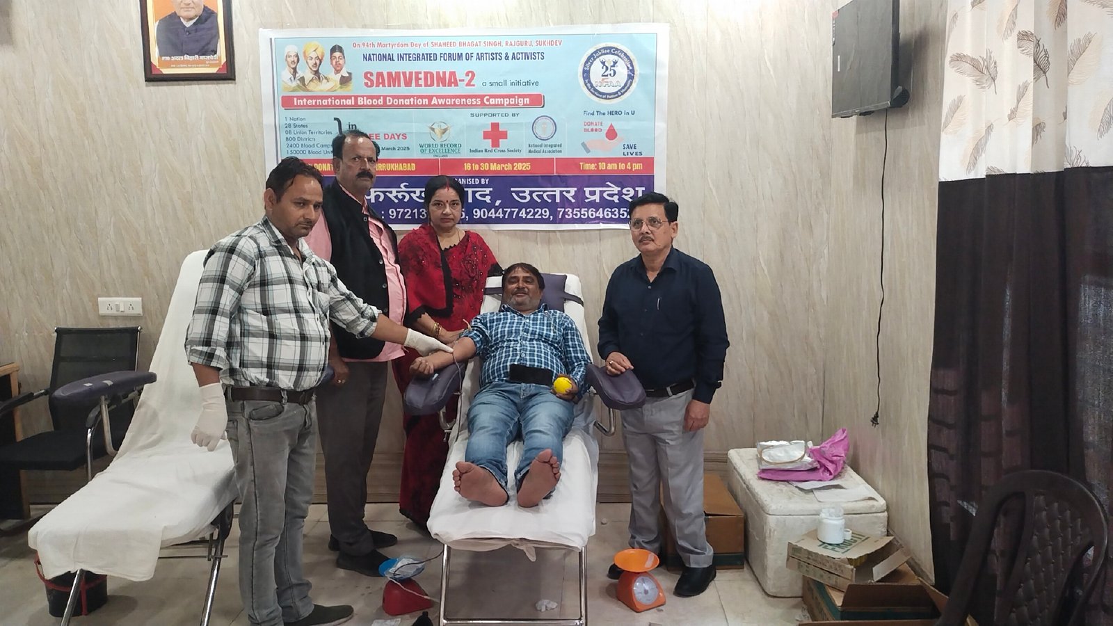 कायमगंज / फर्रुखाबाद :- विकासखंड कायमगंज में शहीद दिवस के उपलक्ष में रक्तदान शिविर का आयोजन किया गया जिसमें 22 लोगों ने रक्तदान किया।Vnewslive24