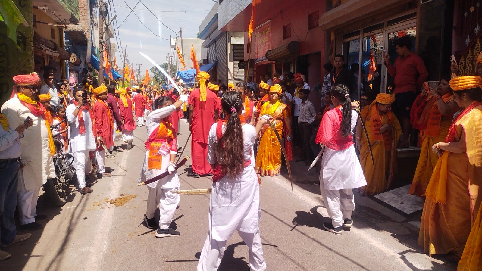 हिंदू युवा अखाड़ा में तलवार बाजी, लट्ठबाजी की विभिन्न कलाओं का प्रदर्शन कर रहे थे। यात्रा में आगे बाइक से, नारी शक्ति, अखाड़ा, शिवगर्जना में सैकड़ों लोग साथ चल रहे थे ।