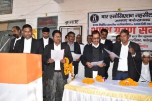 फर्रुखाबाद :    तहसील सदर बार एसोसिएशन का शपथ ग्रहण समारोह तहसील सदर परिसर में संपन्न हुआ उपजिलाधिकारी संजय कुमार सिंह ने नव निर्वाचित पदाधिकारियों को शपथ दिलाई । गुरुवार को तहसील सदर बार एसोसिएशन के शपथ ग्रहण समारोह कार्यक्रम की अध्यक्षता एल्डर्स कमेटी के अध्यक्ष विनोद कनौजिया ने की । कार्यक्रम के मुख्य अतिथि उपजिलाधिकारी संजय कुमार सिंह ने पद एवं गोपनीयता की शपथ दिलाई उन्होंने कहा कि