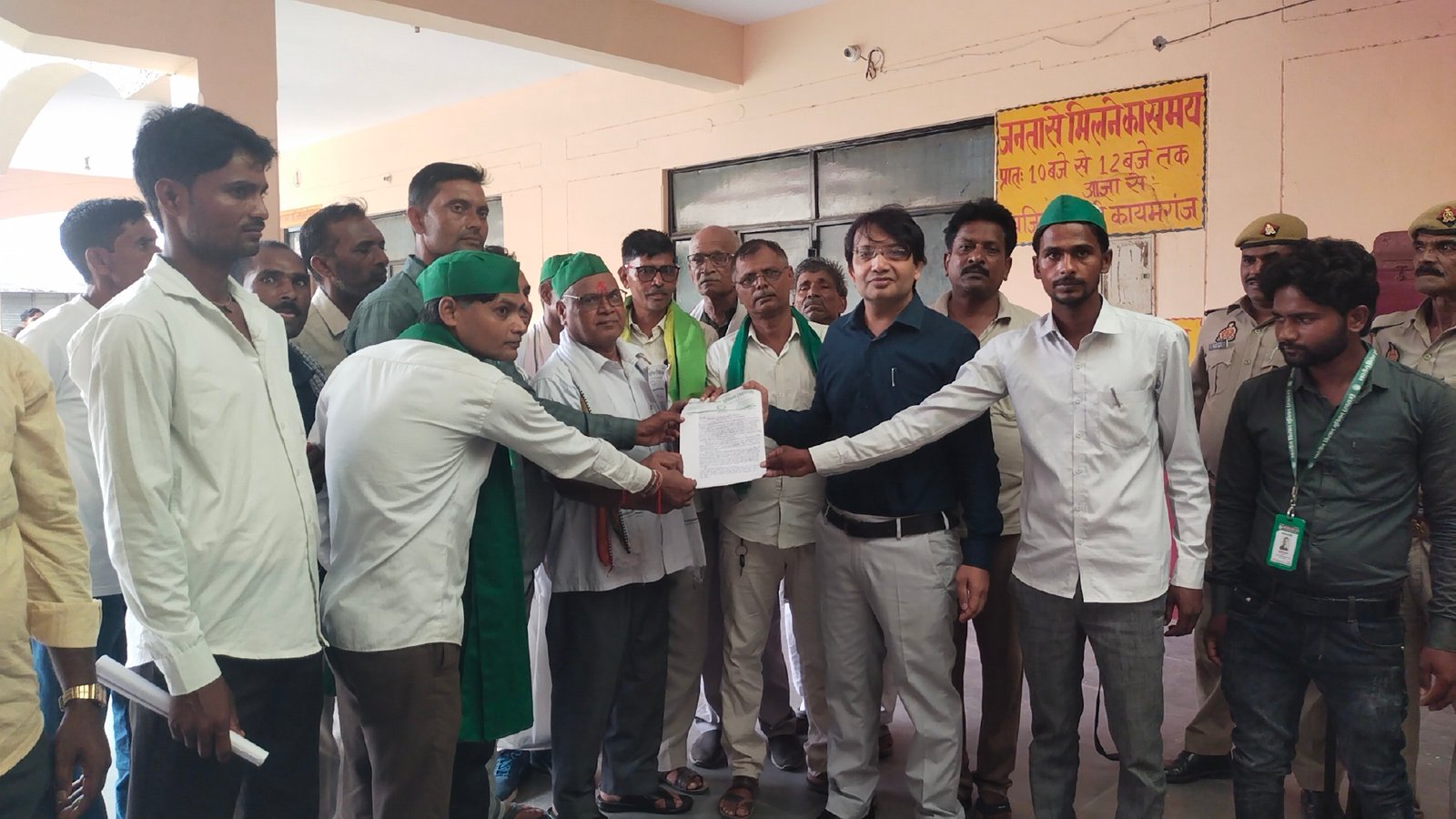 कायमगंज / फर्रूखाबाद :- भारतीय किसान यूनियन स्वराज के प्रदेश सचिव मुन्ना लाल सक्सेना के नेतृत्व में ग्यारह सूत्रीय मांग पत्र उपजिलाधिकारी अतुल कुमार को सौंपा।