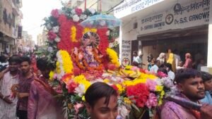 अनंत चर्तुदशी को पालकी,वाहनों पर विराजमान विघ्नहर्ता गणपति को लेकर गंगा घाट पहुंचे भक्त